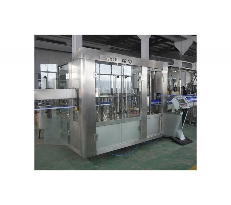 Nahrungsmittelsanitärische Anlagen aus rostfreiem Stahl Automatisches Steuerungssystem mit PLC Füllkapazität von 500 bis 20000 Flaschen pro Stunde Einfache Bedienung Bereitstellung einer Installation Die Füllvorrichtung drei in einem (inklusive Spülmaschine), Füllstoff, Kappe) wird für die Füllung von Wasser und heißen Getränken wie Tee und Saft verwendet.
